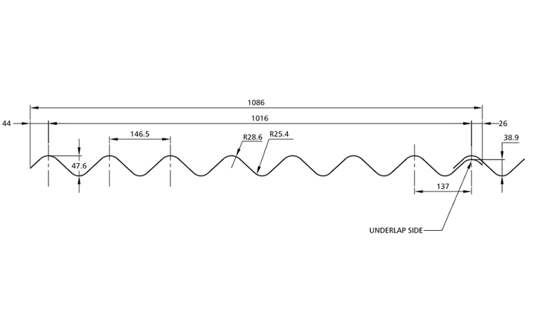 | External Face: | 33/1000, 32/1000, 19/1000, 26/1000, 13/3 corrugated & the Big 6 |